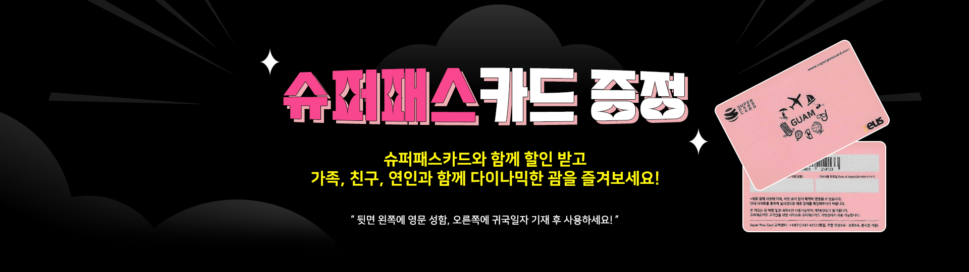 코로나로 해외여행을 못가다가.. 간만에 해외나와서 너무 좋았구요^^괌도깨비 이용하여 공항픽업도 편리하게 하고, 각종 투어도 친절하신 설명과 함께 안전하게 즐길 수 있어서너무 감사했습니다~~ 다음에 괌 또 올때도 괌도깨비 이용할게요!!
